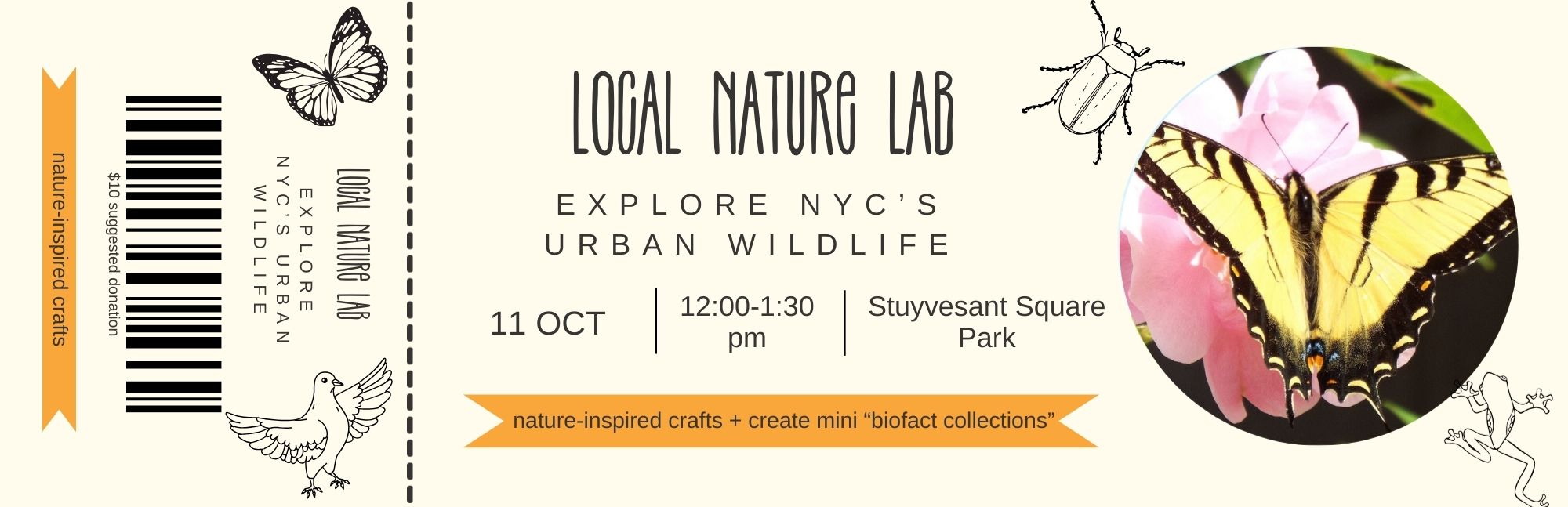 Come explore the wonders of NYCâs urban wildlife with Local Nature Lab! This hands-on event showcases fascinating âbiofactsâ from their collectionâincluding plant and animal specimens, plus birds you might spot in a small city park. All ages are invited to join a nature-inspired craft activity, where participants will create their own mini âbiofact collectionsâ using simple materials like cardboard and yarn. Fun, educational, and creativeâdonât miss this chance to see the park in a whole new way!